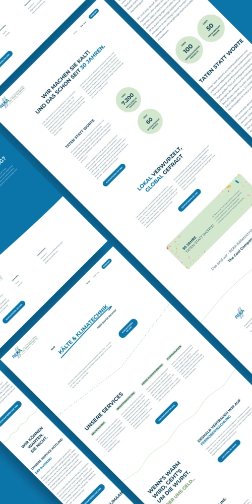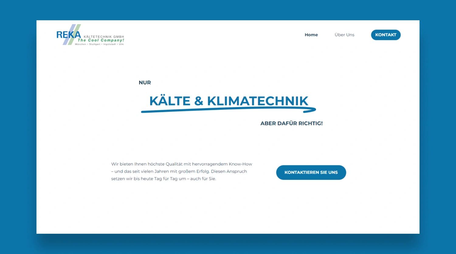 REKA Kältetechnik beauftragte mich, ihre 15 Jahre alte, nie fertiggestellte Webseite komplett neu zu erfinden. Ziel war es, eine professionelle und zeitgemäße Homepage zu erstellen, die den bestehenden Markenauftritt respektiert und das vorhandene Farbkonzept beibehält. Dabei wurde ein klares, effektives Konzept entwickelt, um die neue Homepage so schnell wie möglich zu realisieren.